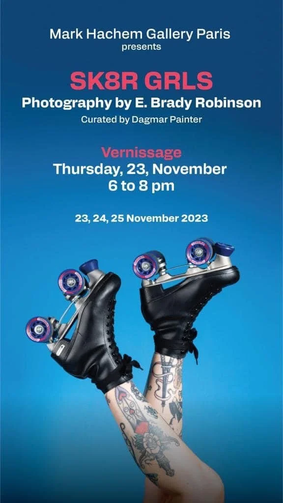 SK8R GRLS, a photography series by E. Brady Robinson, was presented at Mark Hachem Gallery in Paris and curated by Dagmar Painter. On view from November 23 to 25, 2023, the exhibition opened with a vernissage on Thursday, November 23. The work explored the resurgence of roller skating as a form of personal expression, empowerment and joy. Through bold, high-energy portraits, Robinson documented a diverse cast of creatives whose identities intersected with movement, style and community.